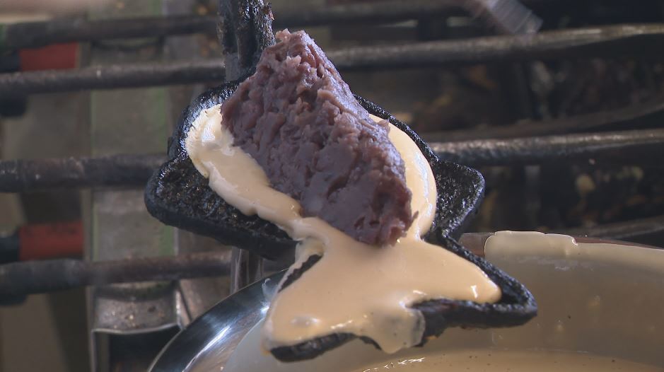 2人は昔からの作り方を守っています。生地に加えるのは『黒糖』。