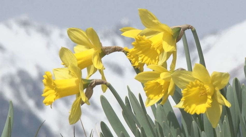 残雪の中央アルプスに映える「スイセン」残雪の中央アルプスに映える黄色い花。 長野県駒ヶ根市の光前寺に近い道路沿いでスイセンが春の訪れを告げています。 地元の住民などが30年以上にわたって管理していて、今年は例年より1週間ほど遅い2月下旬に咲き始めました。 今は早咲きの「アーリーアセンション」などが見ごろ―。 「一目200万本」ともいわれるスイセンは3月下旬から4月上旬にかけてが一番の見ごろになりそうです。