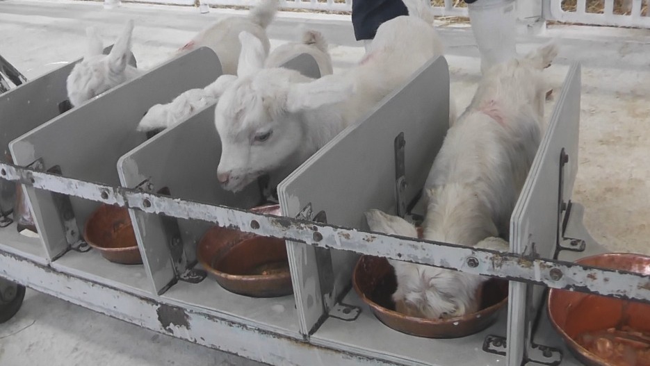 長野県佐久市の牧場でヤギの赤ちゃんが愛らしい姿を見せています。