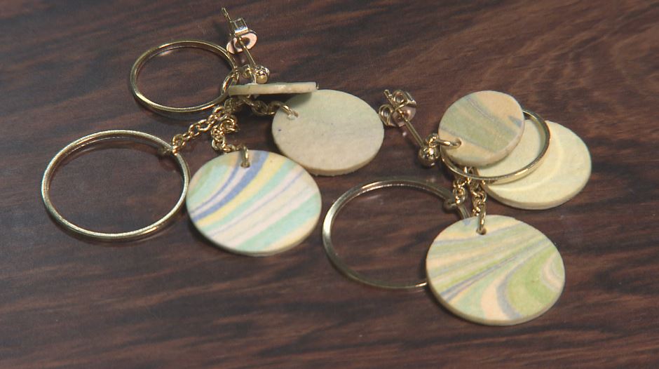 アパレル時代の経験を生かした、和紙のイヤリング。