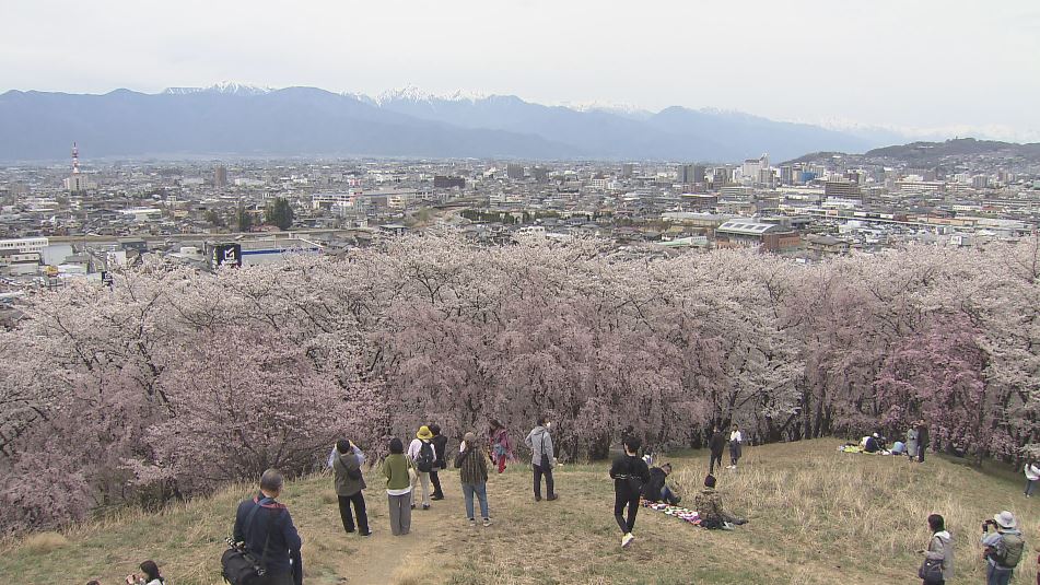 各地で見ごろを迎えている信州の桜。松本市の名所「弘法山」では満開を迎え、絶景が広がっていました。