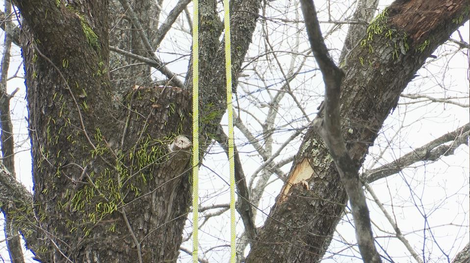 切った木をロープで吊るして、ゆっくり木を降ろす予定でしたが、なんらかの理由で、急に落下したとみられます。