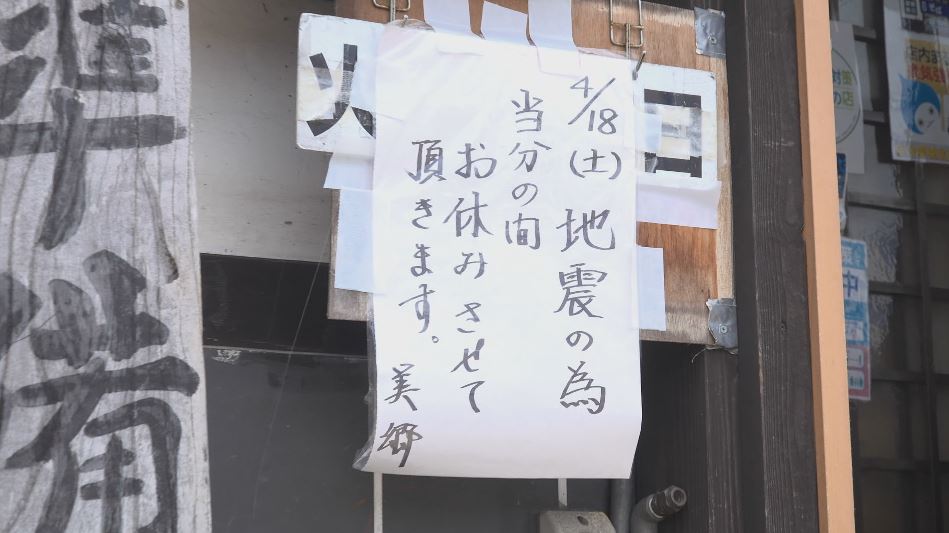 「地震から10日が経過しました。被害のあったこちらの店は、壁のタイルがはがれたまま。被害はそのままです」