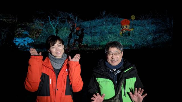 真冬のライトアップと題し、滝全体がライトアップとプロジェクションマッピングの映像で彩られました。